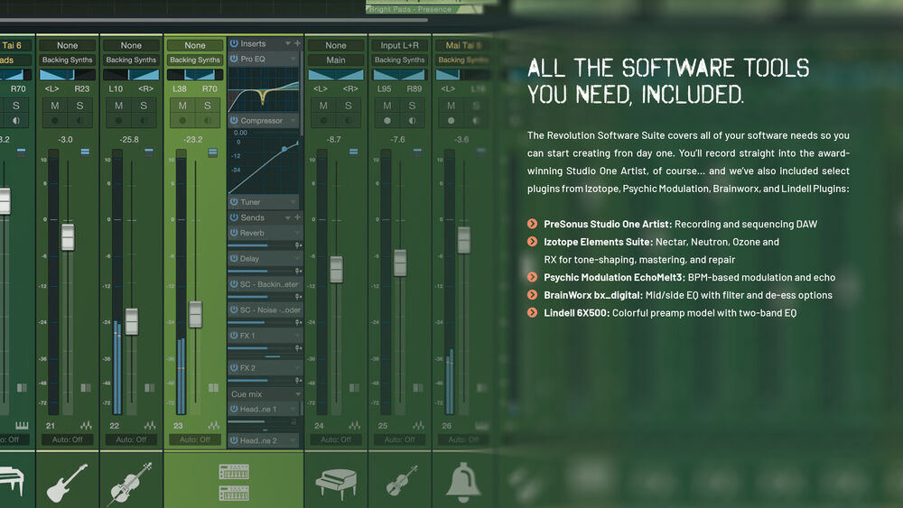 - Includes PreSonus Studio One Artist and plug-ins from iZotope, Brainworx BX, and Lindell Audio