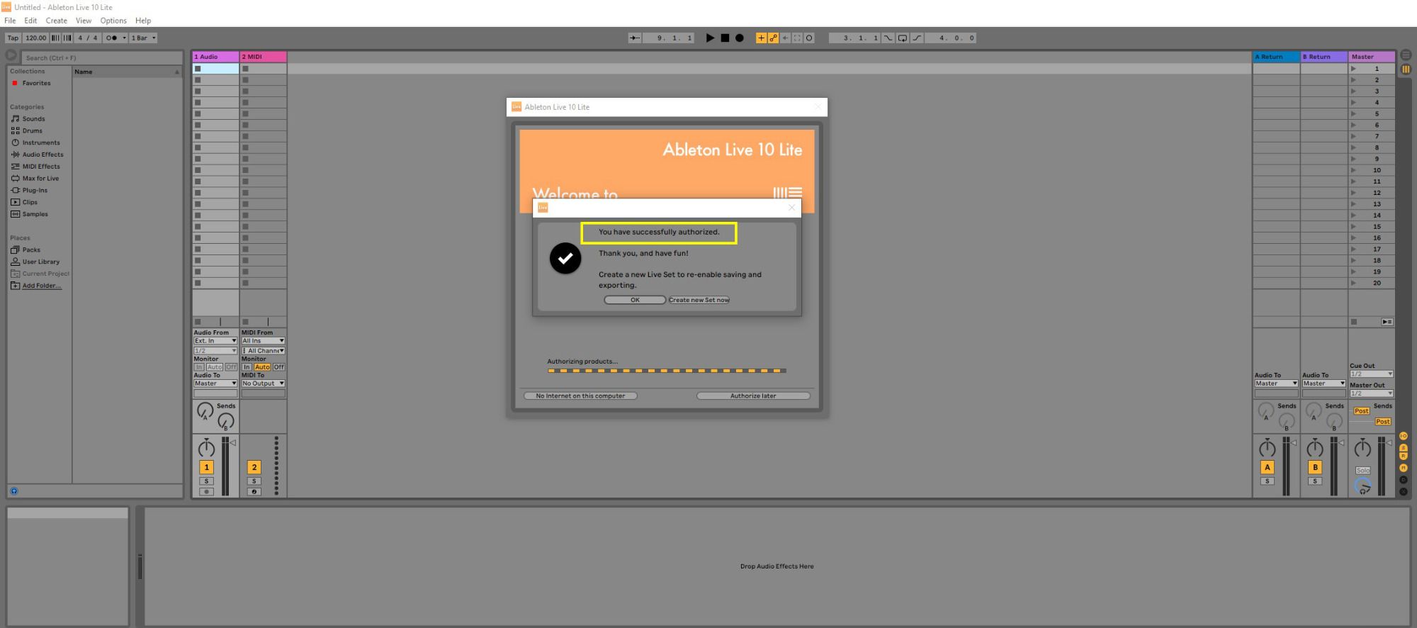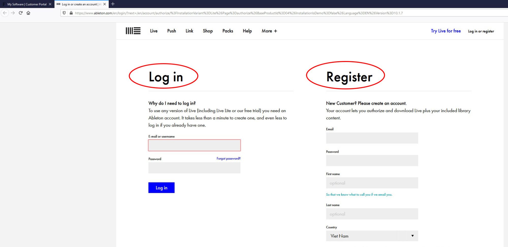 B – Đăng ký bản quyền “Authorize” cho Ableton Live Lite