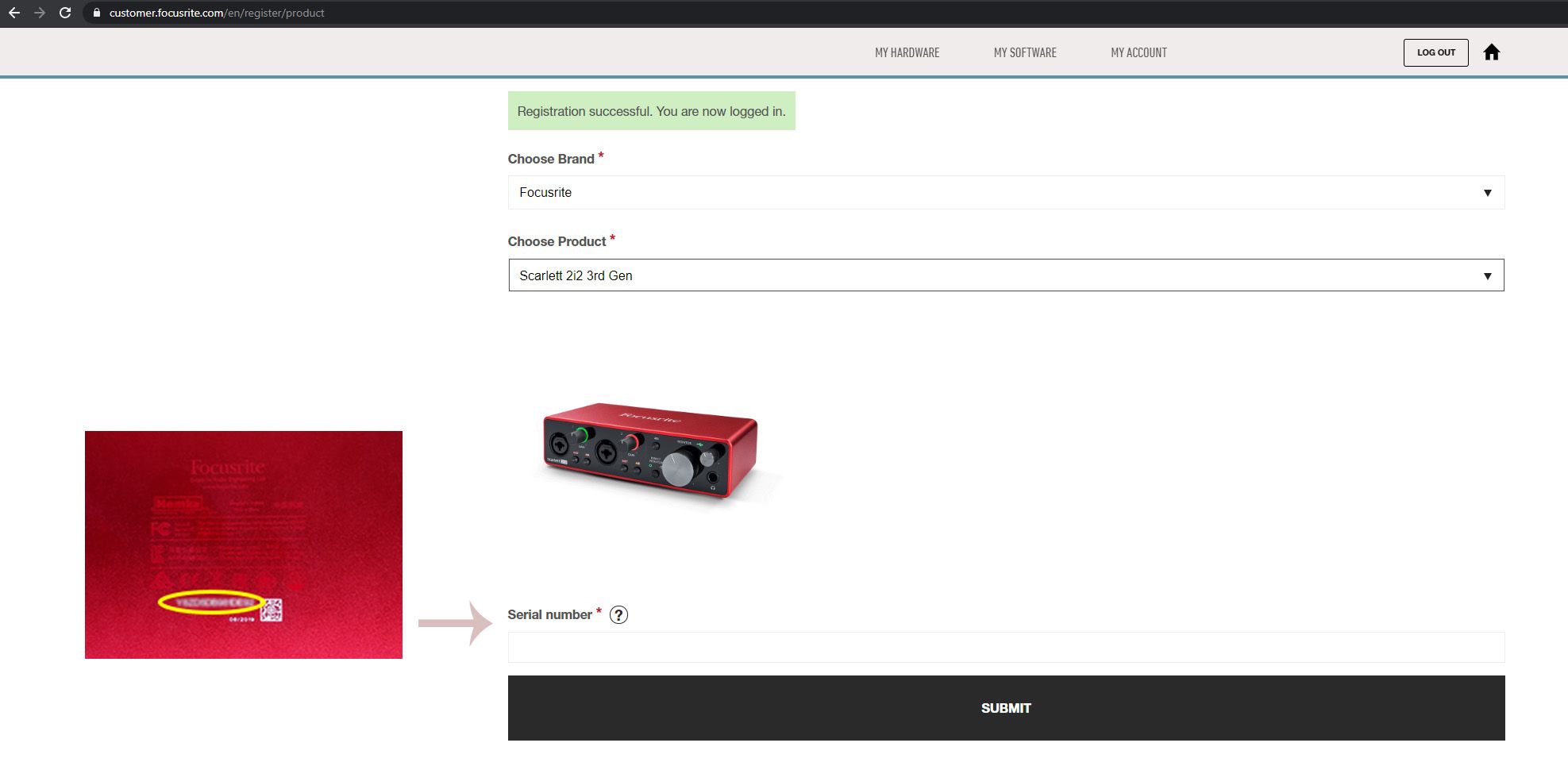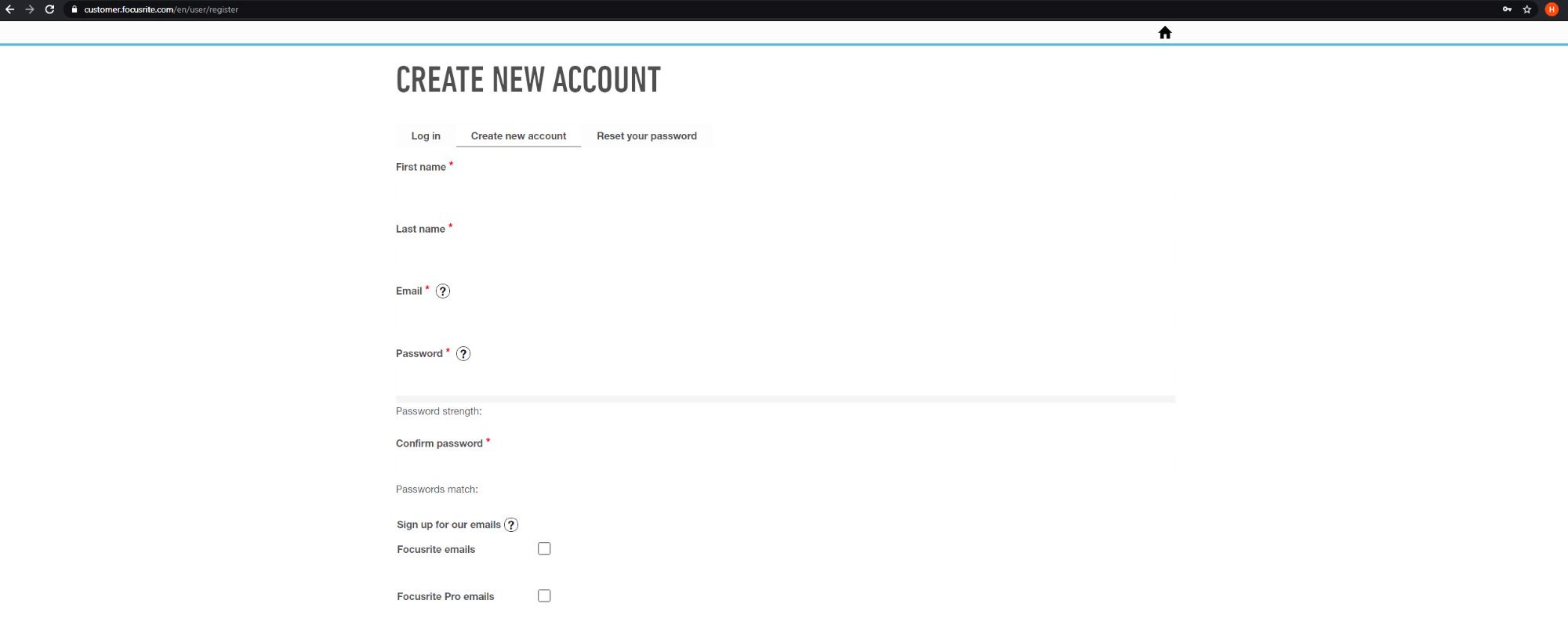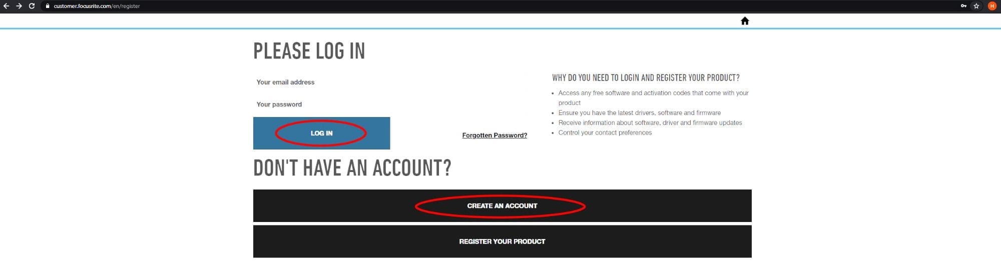 - Tại phần Register a product, Focusrite yêu cầu bạn đăng ký tài khoản trước khi đăng ký sản phẩm của bạn (Lưu ý: bạn nào đã đăng ký tài khoản để download driver rồi thì chỉ cần log in tại bước này và không cần tạo tài khoản nữa);