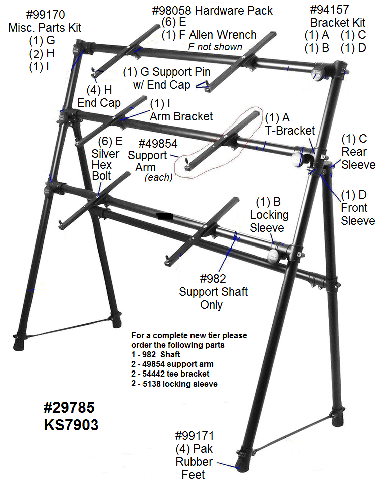 This versatile A-frame keyboard stand lets you adjust the height and angle of your keyboards until they are just right for playing, whether you are standing or sitting. This lightweight, easy to carry, 54" wide stand is an outstanding value for anyone with a multi-keyboard setup. Support bars slide from side-to-side on the pole, allowing a max 76-key keyboard. Also featured is 2 fixed positions for each support bar, allowing 2 sliding front and rear positions, as well as angle adjustments.