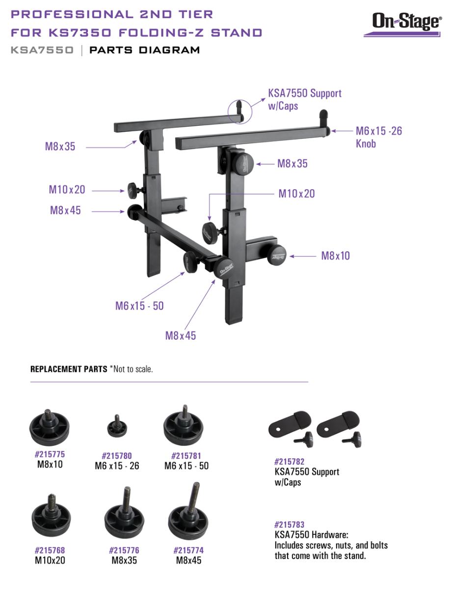 With its internal-locking mounting attachment, the KSA7550 converts your Folding-Z into a 2-tier stand. This height adjustable, tilting tier also adjusts its width along with the width of your stand. For use only with the KS7350 Folding-Z Stand.