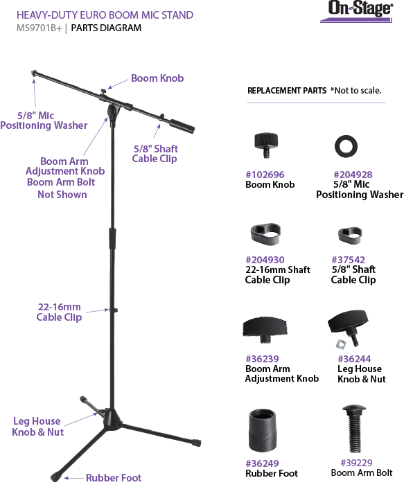 - A steel 30" boom with metal clutch, zinc die-cast end caps, steel shafts, and metal counterweight make the MS9701B truly professional