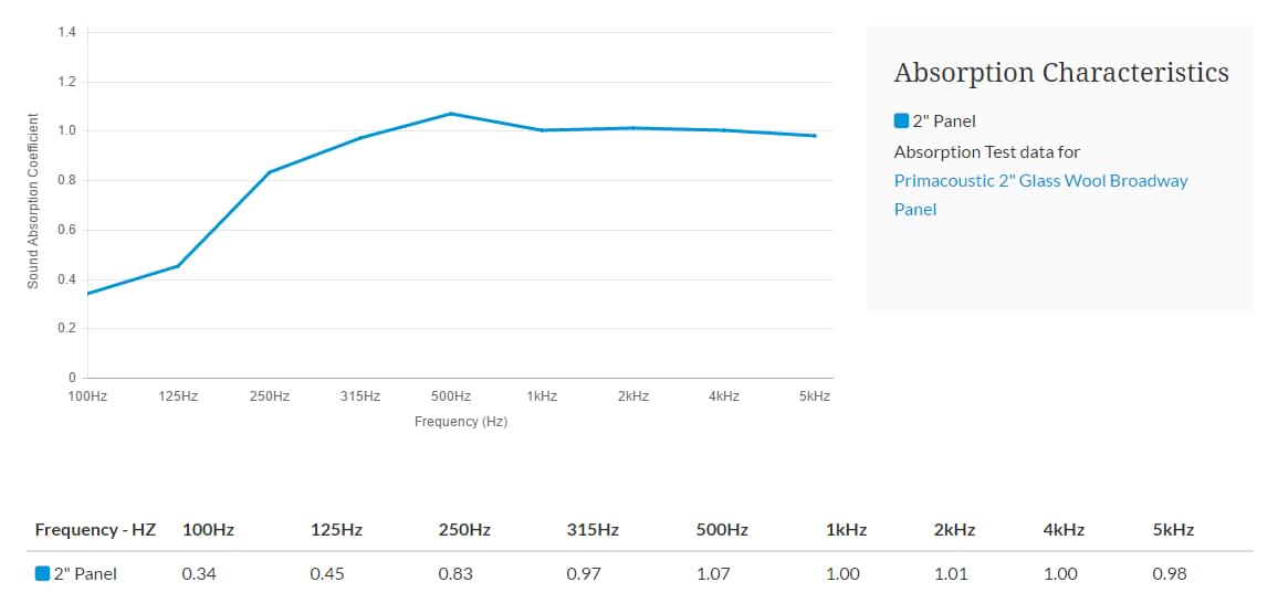 The acoustic panel itself is a custom cut 2″ thick Broadway panel. Because it is offset from the wall with an air gap, the low frequency performance is extended by about an extra half octave. This means that it will be 80% effective down to 250Hz putting well below what most consider to be the directional frequency zone (above 300Hz). Any high frequencies that get past the slats will be absorbed and any sound that gets trapped behind the slats that could potentially cause resonance will also get taken out.