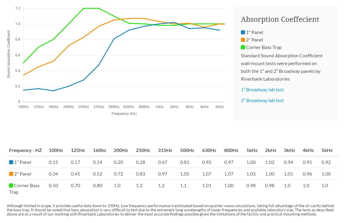 These frequencies will resonate and depending on where you are sitting they may appear to sound louder. Unless treated, you will naturally reach for your equalizer to turn them down. Then, when you play the recording back in your car or at a friends place, you will find that these frequencies are missing. This is one of the reasons why bass management is so important: by reducing the resonance you are essentially creating a more neutral listening environment. And this is the huge advantage Broadway panels have over regular foam: the absorption is even and extends into the lower frequency region.